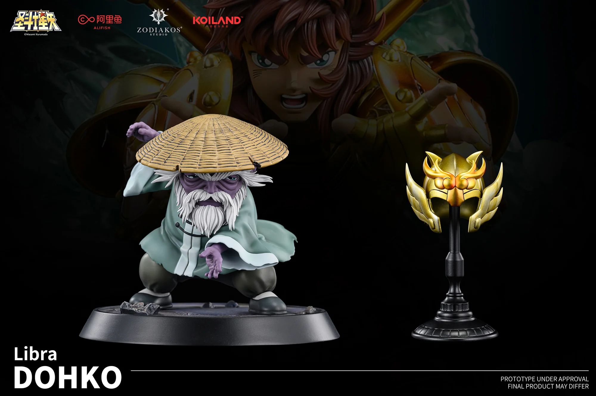 Old Dohko statue (12 cm H × 15 cm W × 15 cm D) & Helmet Stand